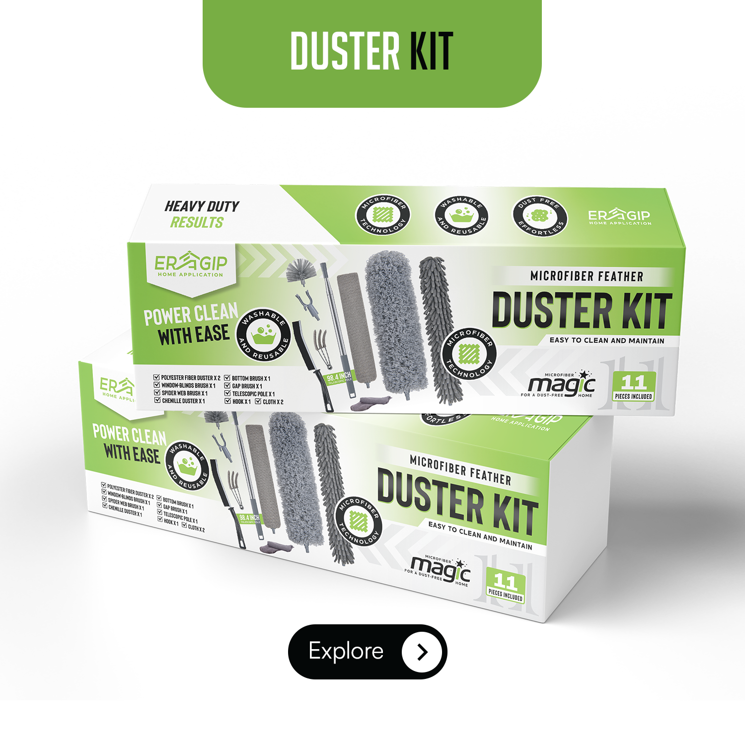 Dusting doesn’t have to be a chore! This 11-piece cleaning kit comes with microfiber dusters and a 30-100 inch extendable pole, making it easy to clean cobwebs, blinds, furniture, and even cars. Reach every corner effortlessly.